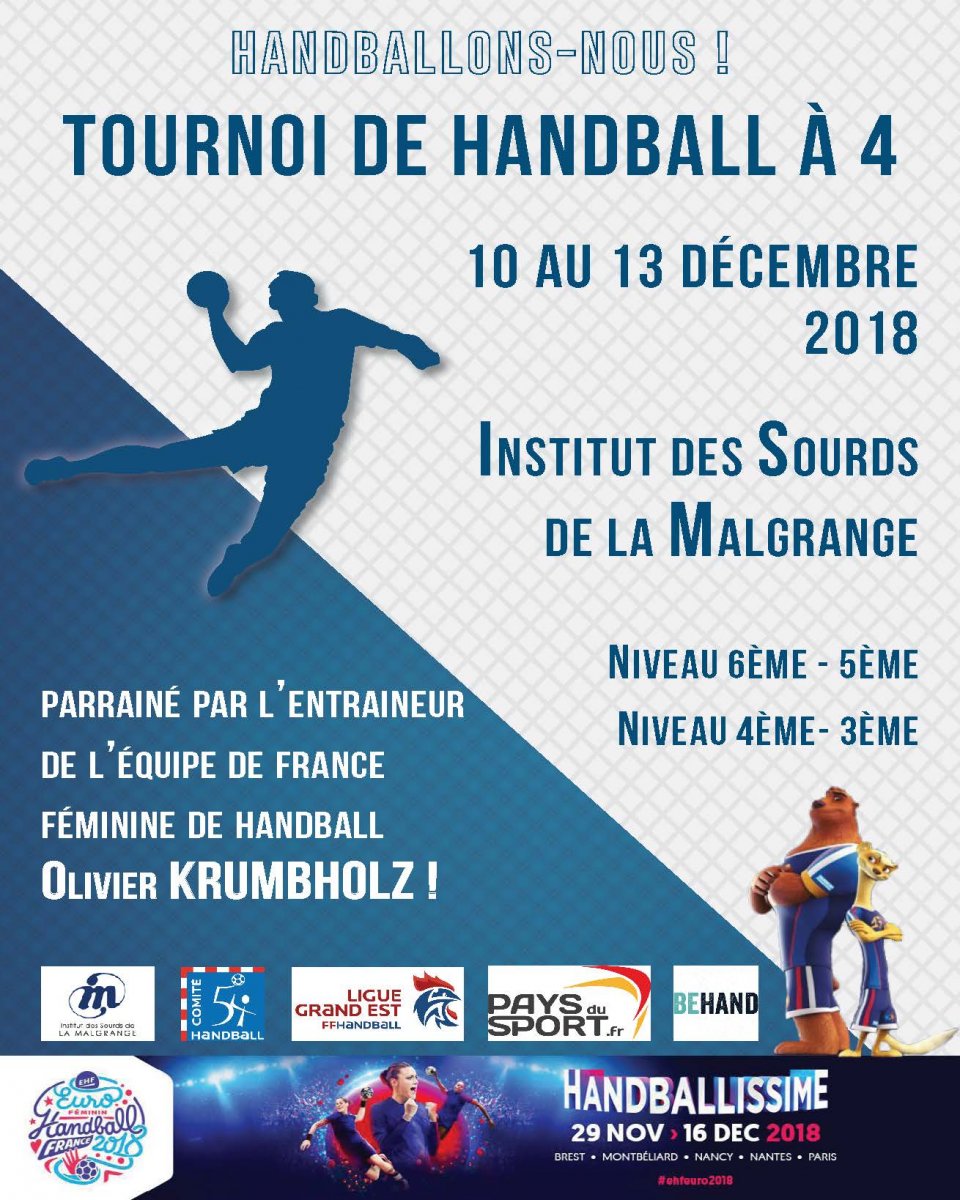 • Handballons-nous : du 10 au 13 décembre 2018